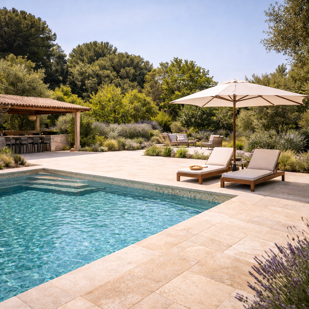 Création de terrasses, murets, clôtures, abords de piscine et ouvrages en pierre.